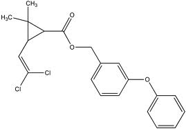 La permetrina es el nombre de una sustancia química sintética que se usa mundialmente como insecticida y acaricida, así como repelente de insectos. Pertenece a la familia de compuestos denominados piretroides cuyo mecanismo de acción es la neurotoxicidad por prolongación de la activación de los canales de sodio causando una despolarización sostenida. No surte efectos sobre las neuronas de mamíferos ni aves, por lo que tiene poca toxicidad—con la excepción de reacciones de hipersensibilidad—en mamíferos, incluyendo los humanos.